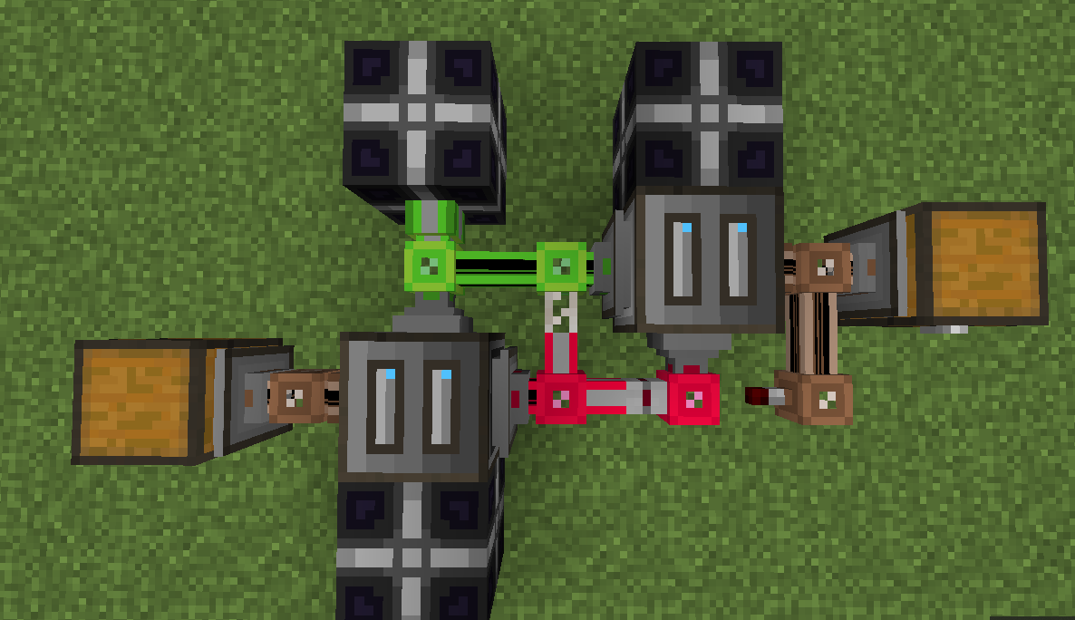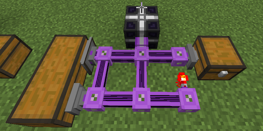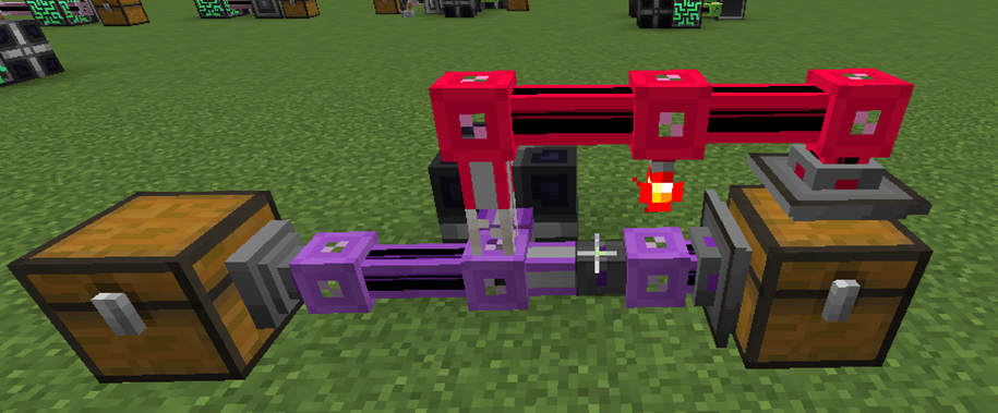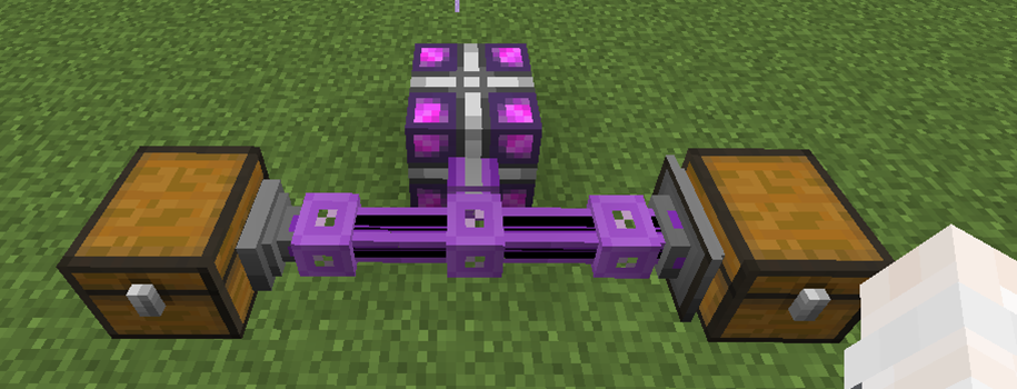 激活拉杆,左边箱子物品通过ME-IO端口中转,进入右边箱子。